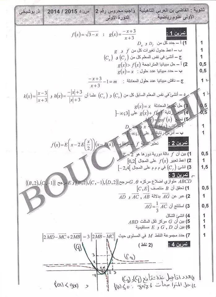فرض رقم 2 في مادة الرياضيات علوم رياضية اولى باك